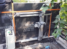 В первую очередь был установлен цветник и подставки под вазы, далее уложен пол из гранитных обожжённых плит (на них сложнее поскользнуться в холодное время года и можно уверенно ходить во влажную погоду). После этих пыльных работ настало время гравировальных работ, требующих очень аккуратного подхода к исполнению.
